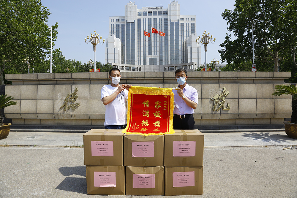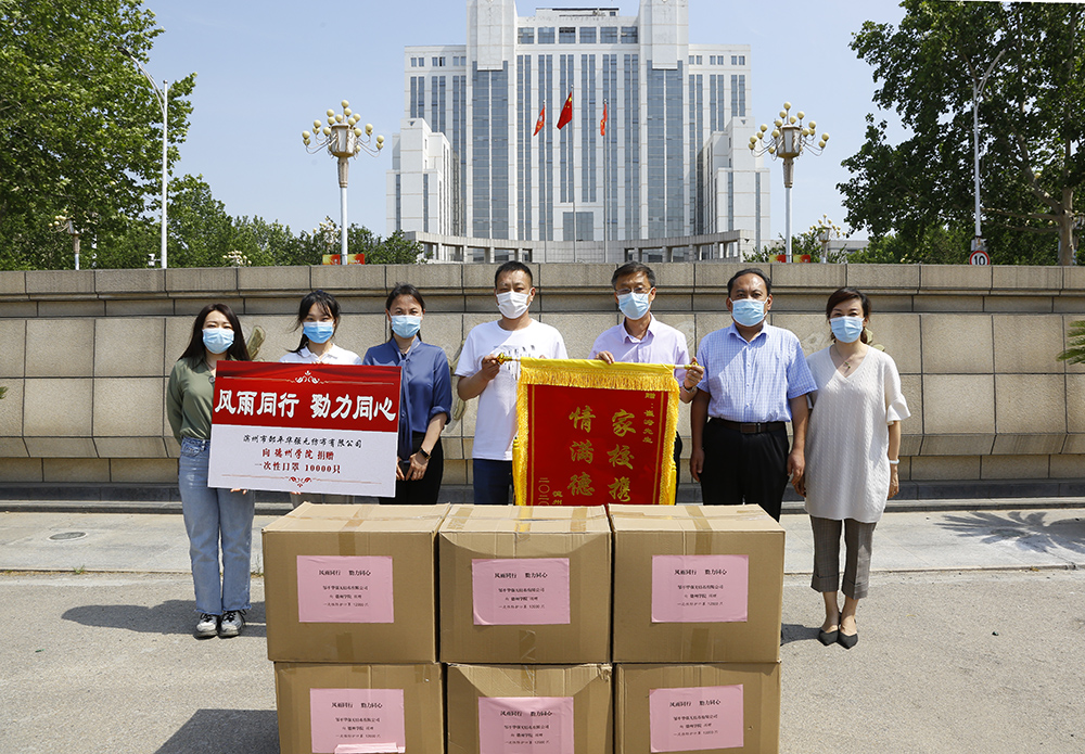 疫情期间,辅导员班主任时刻的叮嘱,每天的信息摸排,每天的线上授课,每周的班会连线,令崔雯潇无时无刻不牵挂母校,随着国内抗疫形势好转,她父亲崔涛所在的滨州市邹平华强无纺布有限公司逐步复工复产,崔雯潇萌发了为学校捐赠口罩共抗疫情的想法,用实际行动来感恩学校的关怀,立即得到了家人的支持。于是,从滨州邹平到德州学院,100多公里的风尘仆仆,近2个小时的长途奔波,崔涛父女将6箱满载爱心的口罩,交到学校手中,希望能够帮助学校返校复学期间抗击疫情,守护学生安全健康。学校党委委员、副校长迟沂军代表学校接收捐赠,并对崔雯潇家人的捐赠表示感谢,他说,崔雯潇同学及其父亲的爱心捐赠给学校师生带来了温暖和信心,他们的慷慨捐助,为学校防疫物资储备提供强有力的支持,为复学复课提供了坚强保障,这不仅是物质支持,更是精神上的鼓舞,体现了德院学子感恩母校的正能量。学校将物尽其用,切实做好校园疫情防控工作,确保全校师生生命安全。