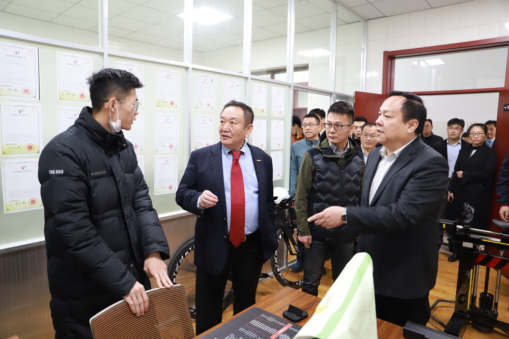 卞志良对学校的热情接待表示感谢,并介绍了泰山体育产业集团的基本情况。他表示,德州学院扎根鲁西北,为区域经济发展提供了强有力的人才与科技支撑,期待双方紧密合作,推动人才培养和科技研发深度合作,以“健康中国”理念为引领,将体育产业做大做强。泰山体育产业集团与德州学院有着坚实的合作基础,共建产业学院是响应国家“体育强国”要求,希望双方共同搭建产学研服务平台,开展体育装备、全民健身数字化追踪检测及周边产品研发;形成内培外引机制,打造国际师资队伍,联合培养具有国际视野的裁判员、教练员、体育训练家政服务师;利用“线上+线下”新模式,建立完善评价机制,建设“体教融合”的先行试点。