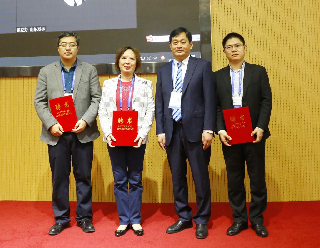 王玉主、杨鲁慧、郭延军、宋清润、范磊、刘志强、郑文泉、张运华受聘为我校外国语学院兼职教授、山东东盟研究中心兼职研究员,赵胜村为现场参加的杨鲁慧、郭延军、范磊颁发聘书。