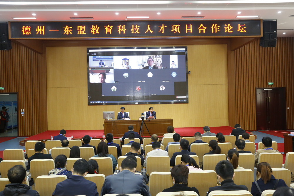 10月24日,德州—东盟教育科技人才项目合作论坛开幕。本次论坛采取视频连线、线上线下结合方式进行。我校校长赵胜村,德州市委常委、统战部长彭小毛,山东大学亚太研究所所长杨鲁慧,我校副校长李永平,中共中央对外联络部当代世界研究中心(“一带一路”智库合作联盟秘书处)处长、研究员林永亮,外交学院亚洲研究所所长郭延军,山东政法学院新加坡研究中心主任范磊,德州市人民政府外事办公室主任宋小美,德州市科技局(外国专家局)副局长田晓静现场出席开幕式。中国社会科学院亚太与全球战略研究院研究员王玉主、广东外语外贸大学东方语言文化学院院长、国别和区域高等研究院副院长刘志强、北京外国语大学亚洲学院副教授宋清润、马来西亚拉曼大学中文系副教授郑文泉、马来西亚泰莱大学会计与金融系副教授张运华博士通过线上方式参加。开幕式由李永平主持。