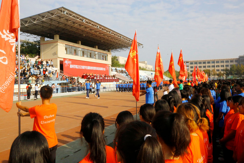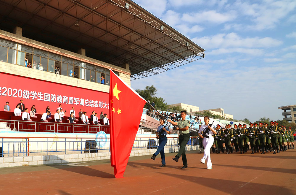 9月30日上午,学校在田径运动场举行2020级学生国防教育暨军训总结表彰大会。校长赵胜村,党委委员、副校长迟沂军、徐静, 党委委员、党委宣传部(教师工作部)部长任立春出席。大会由迟沂军主持。