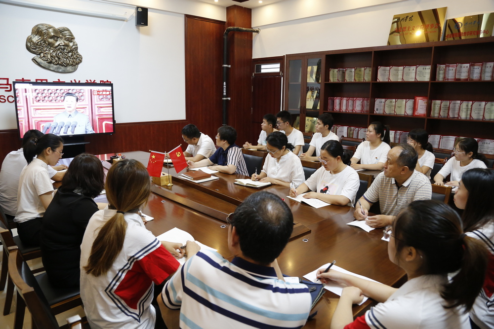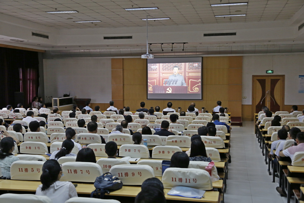 学校领导班子成员、职能部门、教辅单位、继续教育学院、创新创业学院等单位科级以上干部在厚德楼第一报告厅集中收看大会实况。各党总支分别组织广大师生集中和通过互联网、电视等各种形式收听收看。