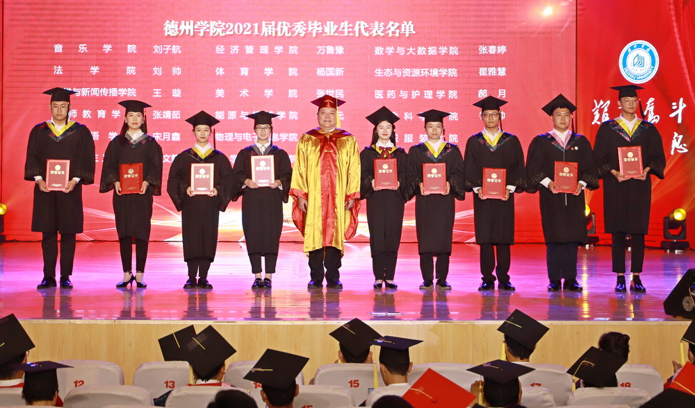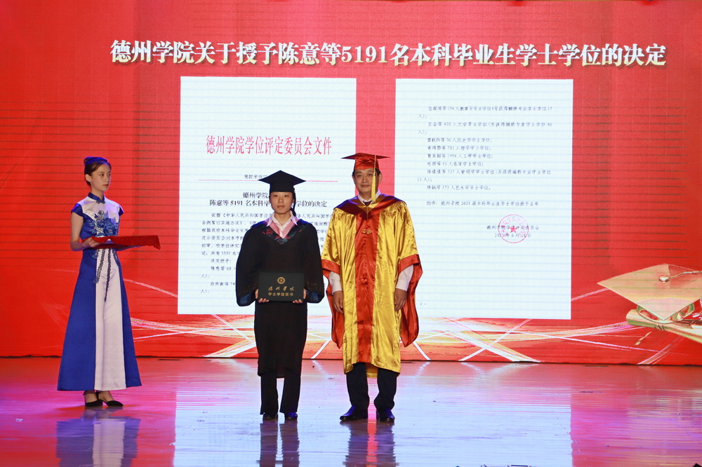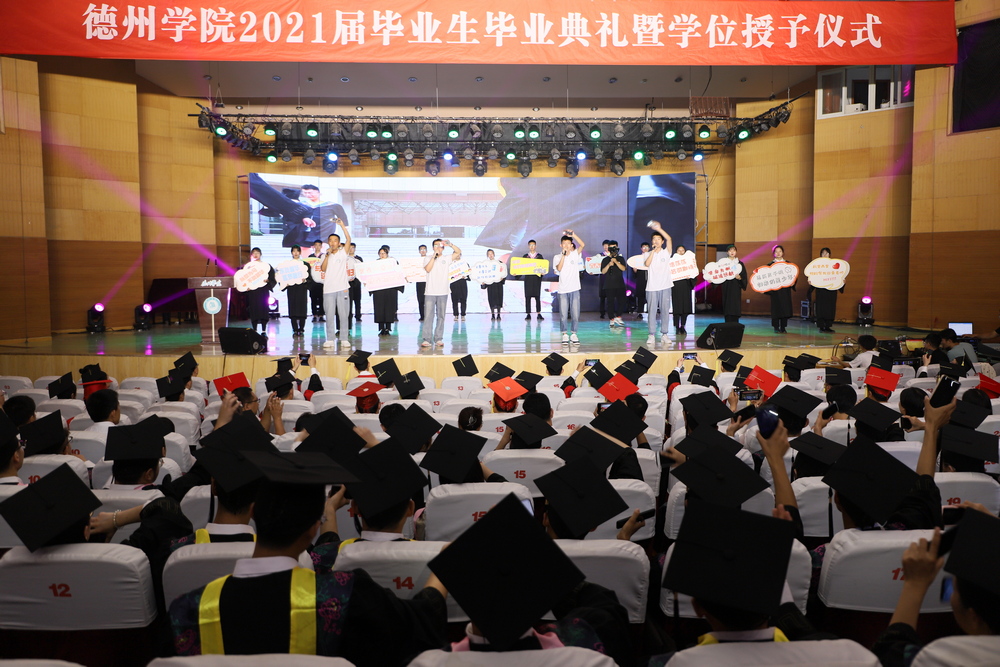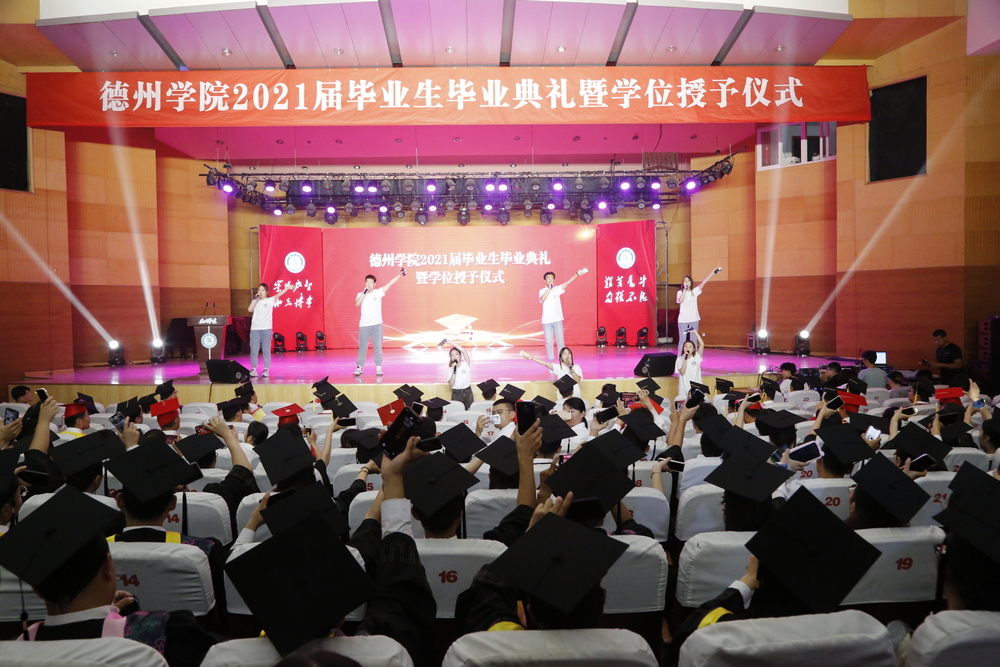 党委书记车滨,校长赵胜村,党委副书记王金利,党委委员、副校长张明征、迟沂军,党委委员、纪委书记、省监委驻德州学院监察专员刘继泉,党委委员、副校长李永平、张存峰、徐静,党委委员、组织部部长、统战部部长杨恩红,党委委员、宣传部(教师工作部)部长任立春及学校学位评定委员会委员、相关职能部门负责人,教学单位班子成员、辅导员、毕业生心目中的好老师、学生管理人员、毕业生和在校生代表出席仪式。典礼仪式通过德州学院官方微博全程线上直播,采用“线上+线下”方式,超2万人在线观看。