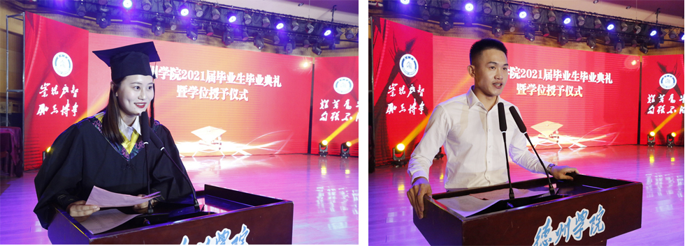 毕业生家长代表、物理与电子信息学院王子朋同学和外国语学院栾晓的家长表达了对学校的感激以及对孩子们的祝福,祝愿德州学院桃李芬芳,越办越好。