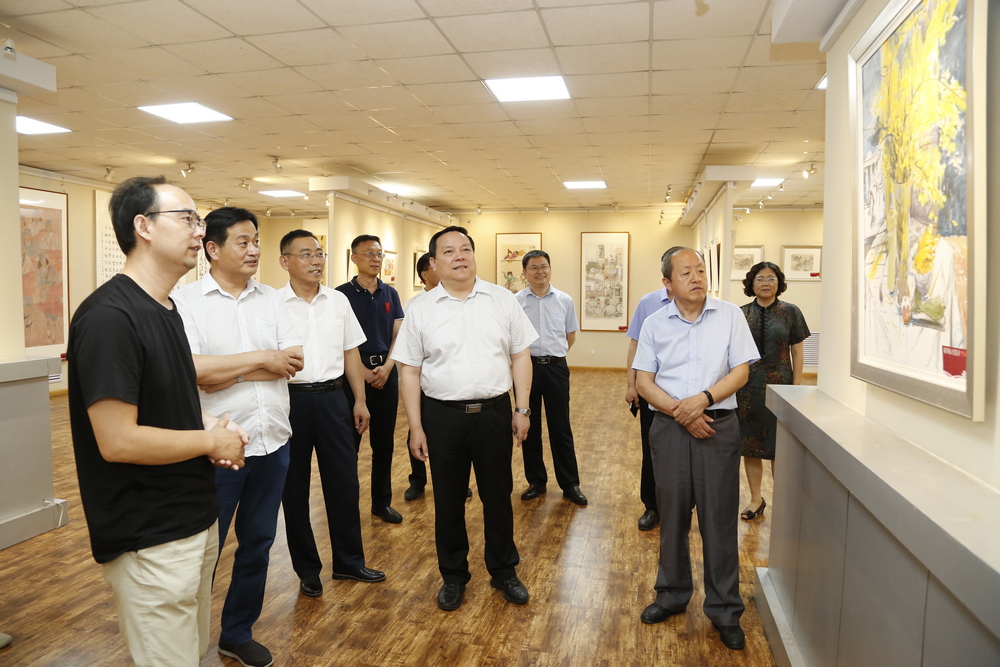 校党委书记车滨,校长赵胜村,党委副书记王金利,党委委员、副校长迟沂军、李永平、张存峰,党委委员、组织部部长、统战部部长杨恩红,党委委员、宣传部(教师工作部)部长任立春参观了书画展。
