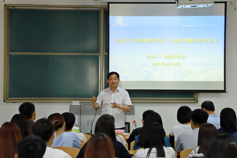 6月18日下午,校长赵胜村在博文楼427为法学院2019级公共事业管理专业学生上思政课。