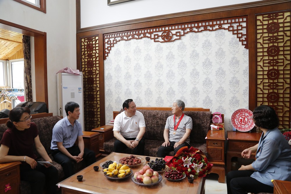 6月17日上午,车滨走访慰问建国前参加工作的老党员,并为他们颁发了“光荣在党50年”纪念章。