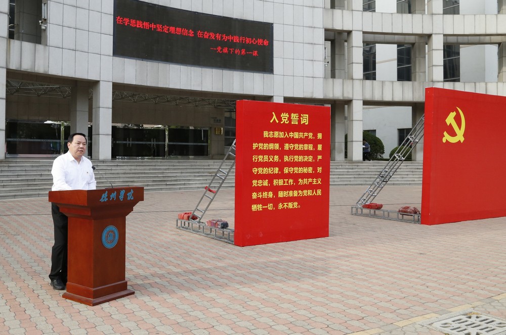 “我志愿加入中国共产党,拥护党的纲领……随时准备为党和人民牺牲一切,永不叛党。”6月11日下午,2021年新党员入党宣誓仪式在学苑广场举行。914名新党员面对党旗高举右手、庄严宣誓,党委书记车滨出席仪式并为新党员讲了第一堂党课,党委委员、组织部、统战部部长杨恩红主持仪式并领誓。
