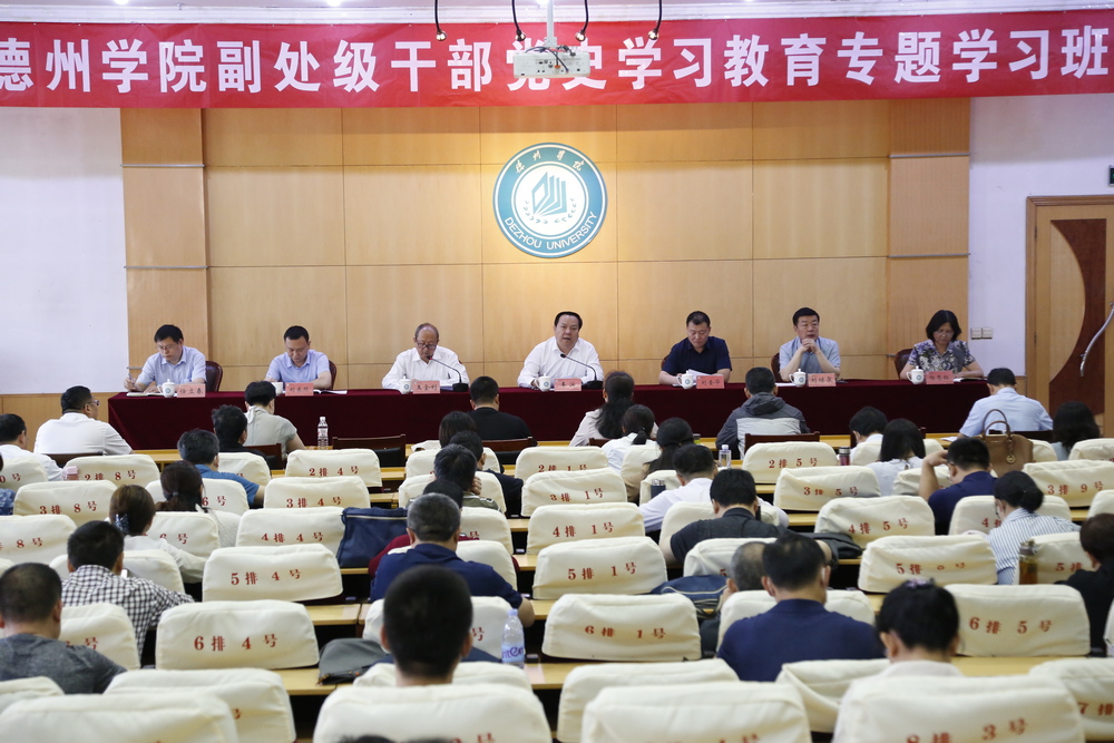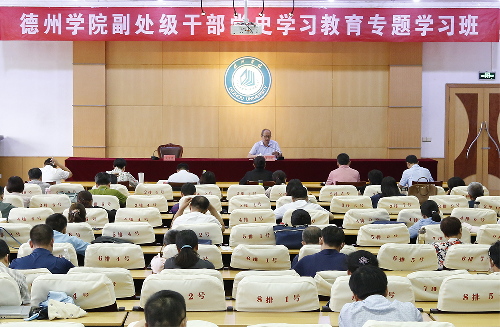6月4日,全校副处级干部党史学习教育专题学习班开班仪式在厚德楼四楼报告厅举行。省委第一巡回指导组刘奎华、刘泰然出席开班仪式。校党委书记车滨出席并作动员讲话,党委副书记王金利,党委委员、纪委书记、省监委驻德州学院监察专员刘继泉,党委委员、组织部部长、统战部部长杨恩红,党委委员、宣传部(教师工作部)部长任立春出席。王金利主持开班仪式。