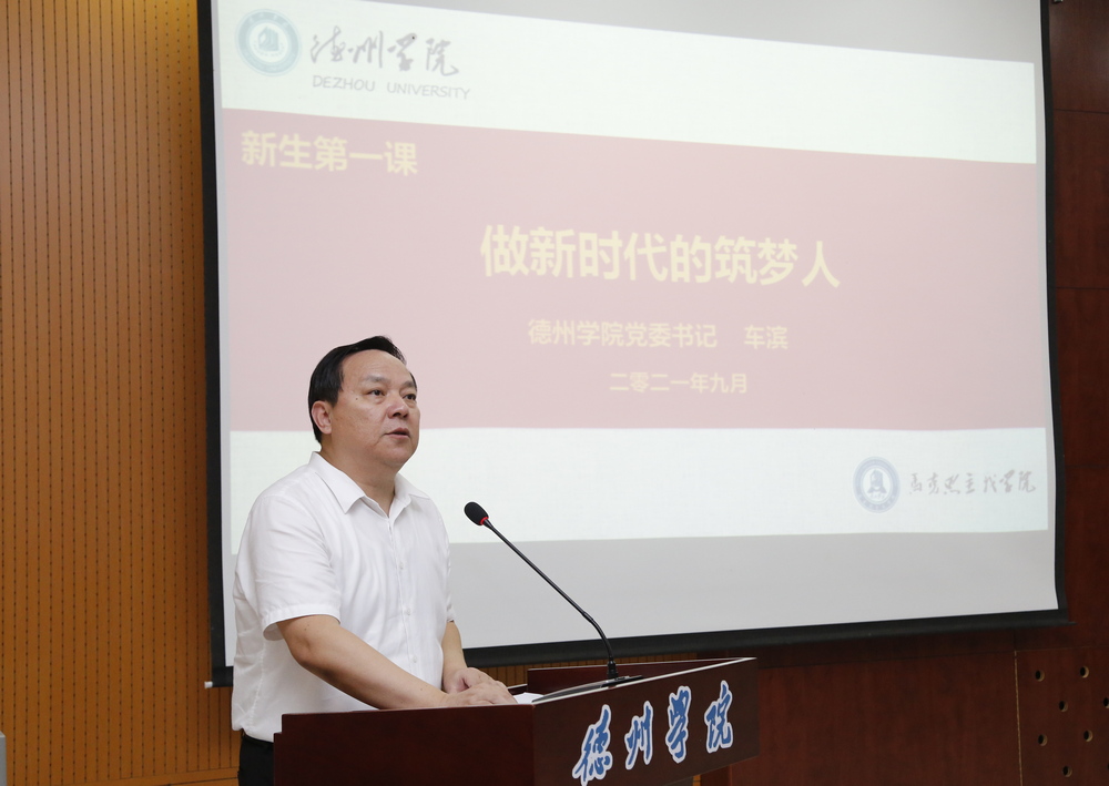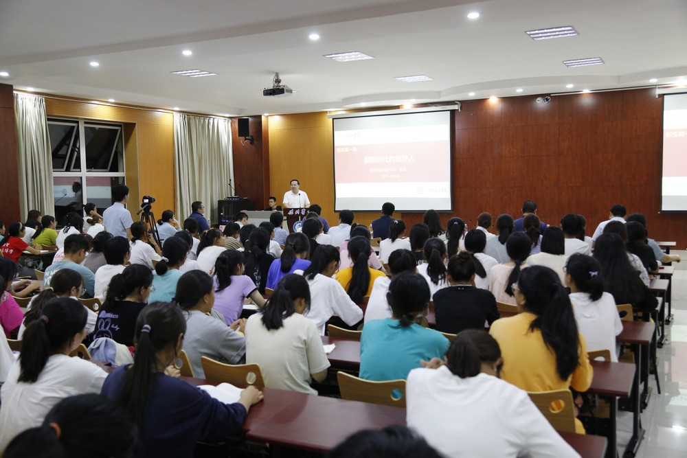 9月15日,学校党委书记车滨以“做新时代的筑梦人”为题,为马克思主义学院2021级新生讲授第一堂思政课。学生工作部、合作发展处负责人,马克思主义学院班子成员、班主任、辅导员、教师代表、学生代表和2021级全体新生参加。