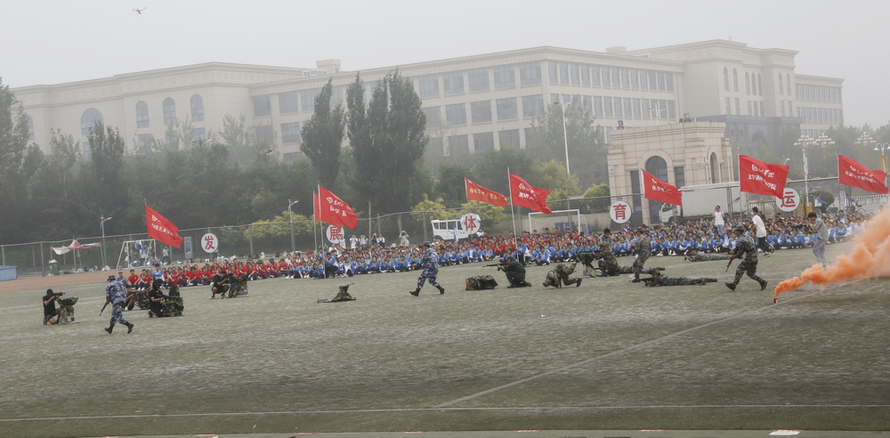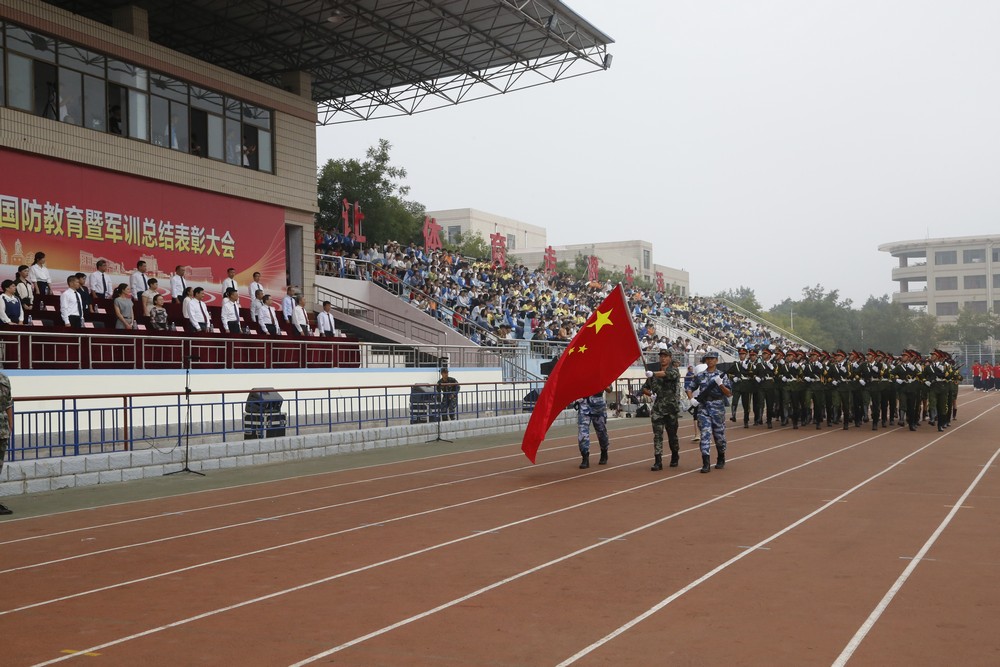 9月13日上午,学生国防教育暨军训总结表彰大会在田径运动场举行。校长赵胜村,副校长迟沂军、徐静出席。