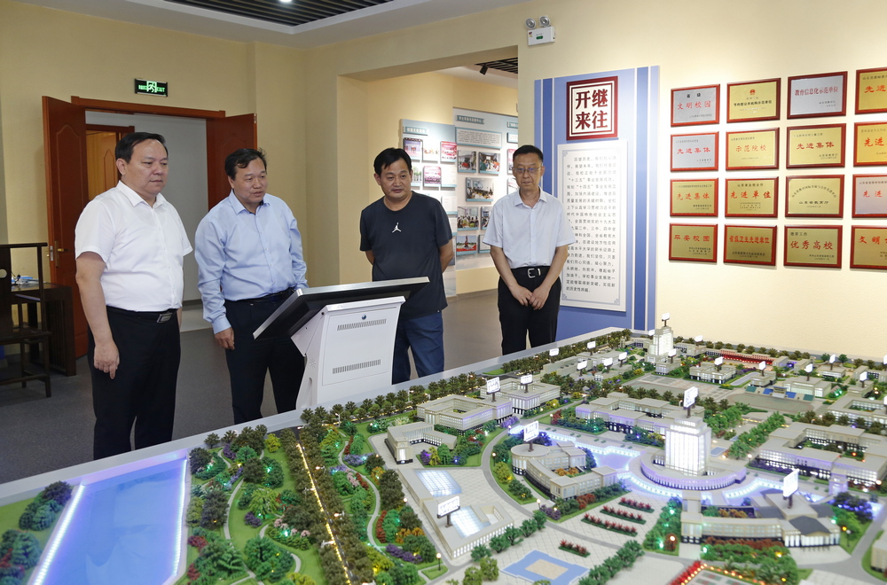 郭善利一行先后考察了校史馆、第四食堂等。双方就党建工作、人才队伍建设、产教融合、学生培养、办学条件、校城融合等工作进行了深入交流。郭善利称赞我校改革发展取得的成绩和发生的变化。希望双方进一步加强交流、深化合作,共同推进高等教育质量提升。