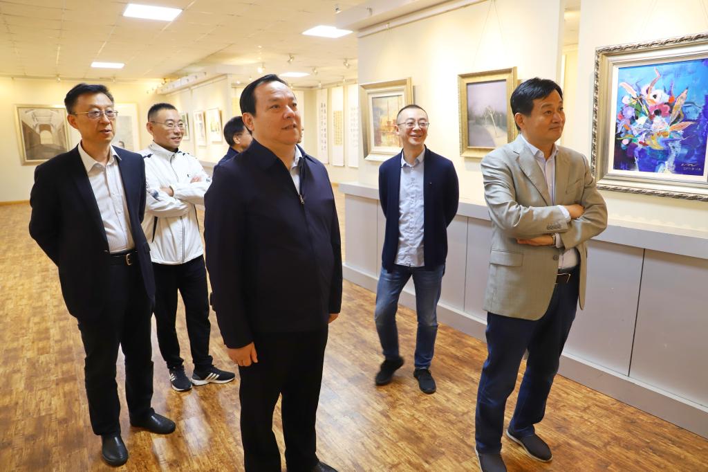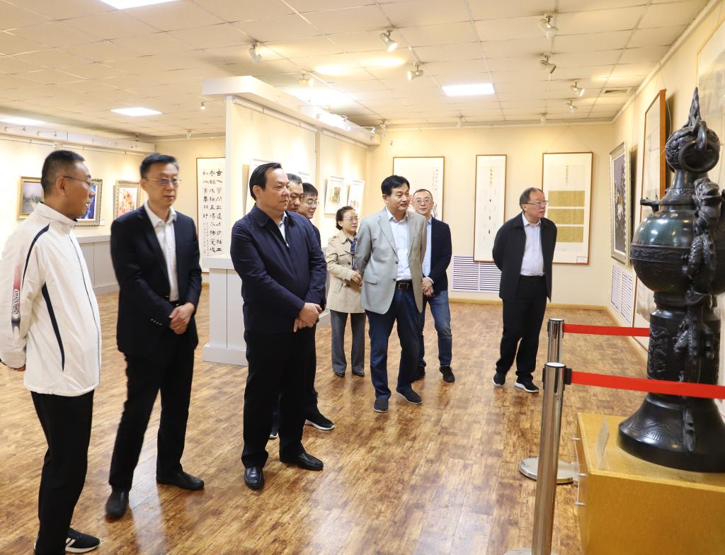 校党委书记车滨,校长赵胜村,党委副书记王金利,党委委员、副校长张明征、迟沂军、李永平、张存峰、徐静,党委委员、组织部部长、统战部部长杨恩红参观了书画展。