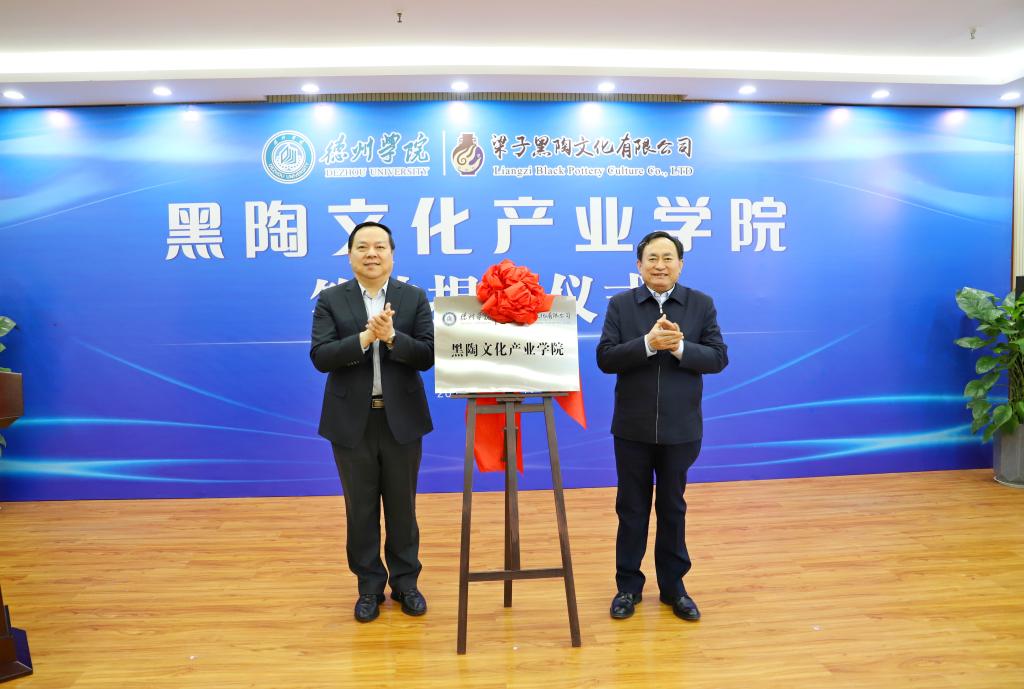 董绍辉和车滨共同为“德州学院黑陶文化产业学院”揭牌。