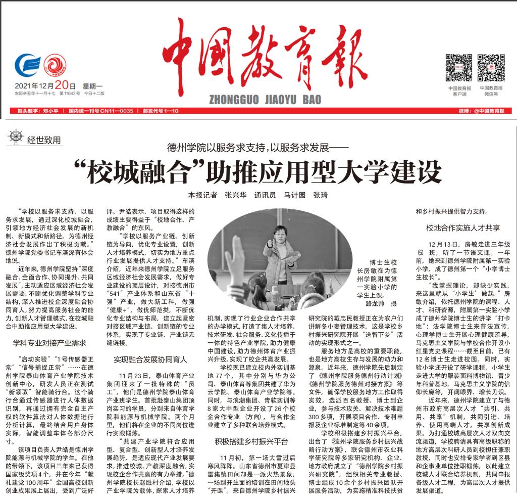 “学校以服务求支持,以服务求发展,通过深化校城融合,引领地方经济社会发展的新机制、新模式和新路径,为德州经济社会发展作出了积极贡献。”德州学院党委书记车滨深有体会地说。