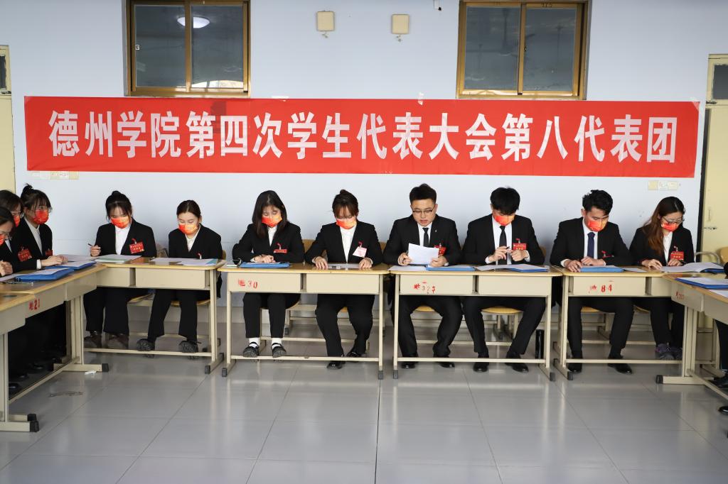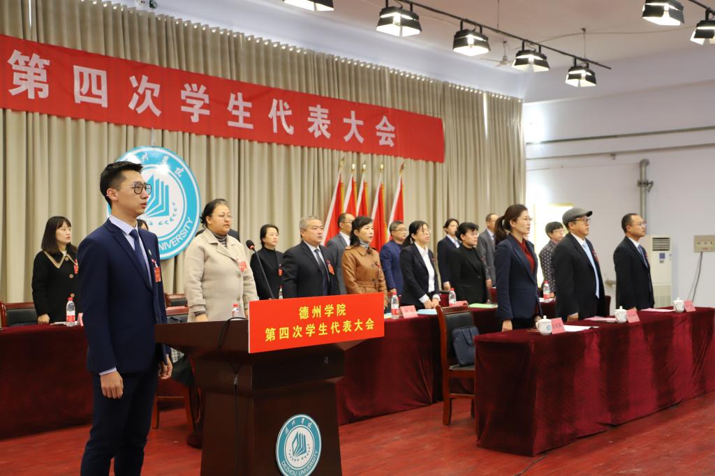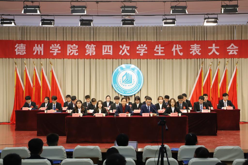 在嘹亮的校歌声中,德州学院第四次学生代表大会胜利闭幕。闭幕式结束后,德州学院第四届学生委员会第1次会议召开,新当选的学生会主席团代表表态,团委聘任专职团干担任学生会秘书长,团委主要负责人讲话。