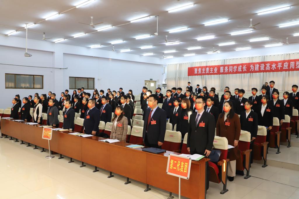 12月4日,德州学院第四次学生代表大会在求实楼报告厅顺利召开。共青团德州市委副书记曲元康、校党委副书记王金利出席开幕式。学代会代表、列席学生代表、团委主要负责人、各学院党委副书记、团总支书记共300余人参加开幕式。会议严格按照学校疫情防控要求,在求实楼410、411室设分会场。