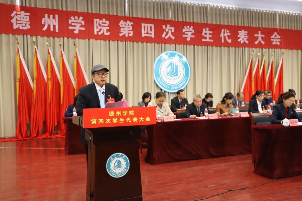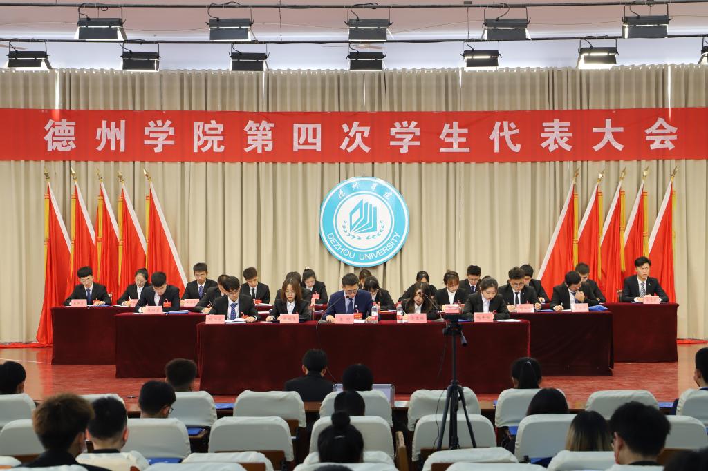 9:10,大会第一次全体会议召开,代表们听取和审议唐闻同学代表第三届学生会所作的题为《聚焦主责主业 服务同学成长 为建设高水平应用型大学凝聚青春力量》的工作报告,听取和审议德州学院第四次学生代表大会提案工作报告,通过大会选举办法。