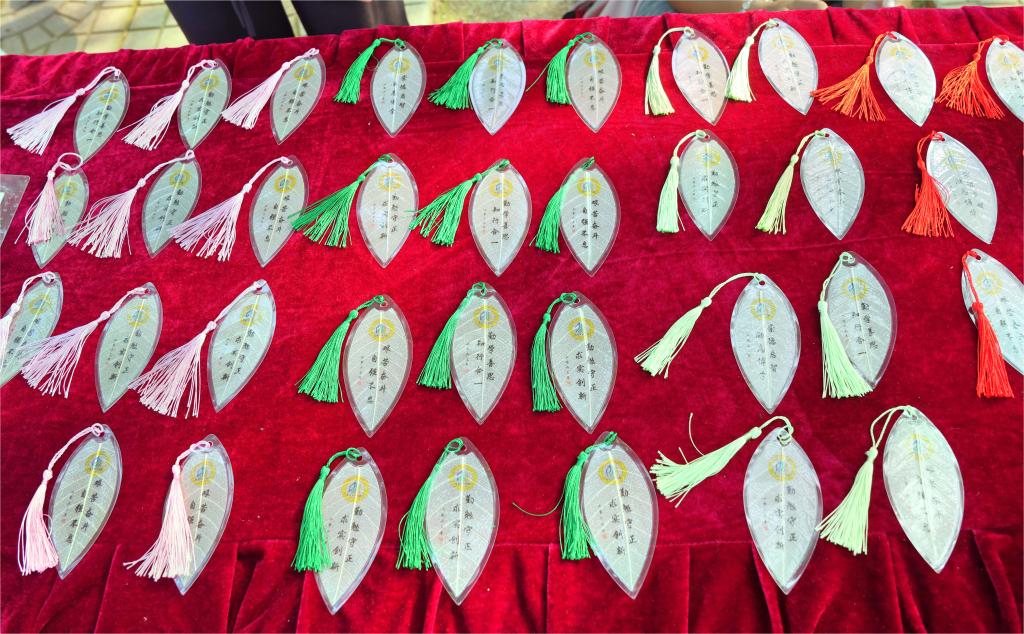 生命科学学院的学长、学姐们采集了校园内树叶将祝福与寄语书于树叶,表达了最真挚的祝福。